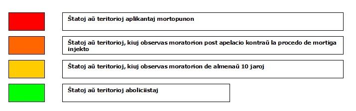 En Eŭropo, nur Beloruso plu aplikas ĝin. Antaŭnelonge, Francio aliparte petis de la aŭtoritatoj de tiu lando « iniciati moratorion pri mortopuno, kiel unua etapo al abolo ».